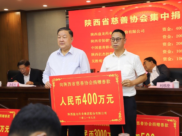 盘龙药业向陕西省慈善协会捐赠四百万善款日期:2022-04-03