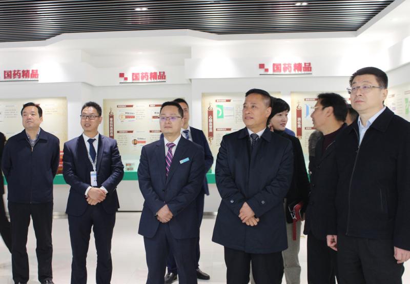 贠书记一行首先来到企业展厅进行参观。董事长从公司简介、发展历程、国药精品、研发创新、扶贫攻坚等方面详细地介绍了企业概况。在宽敞明亮,设计美观的现代化展厅里,大家边走边看,边听边问,不时互动交流,现场氛围轻松热烈。
