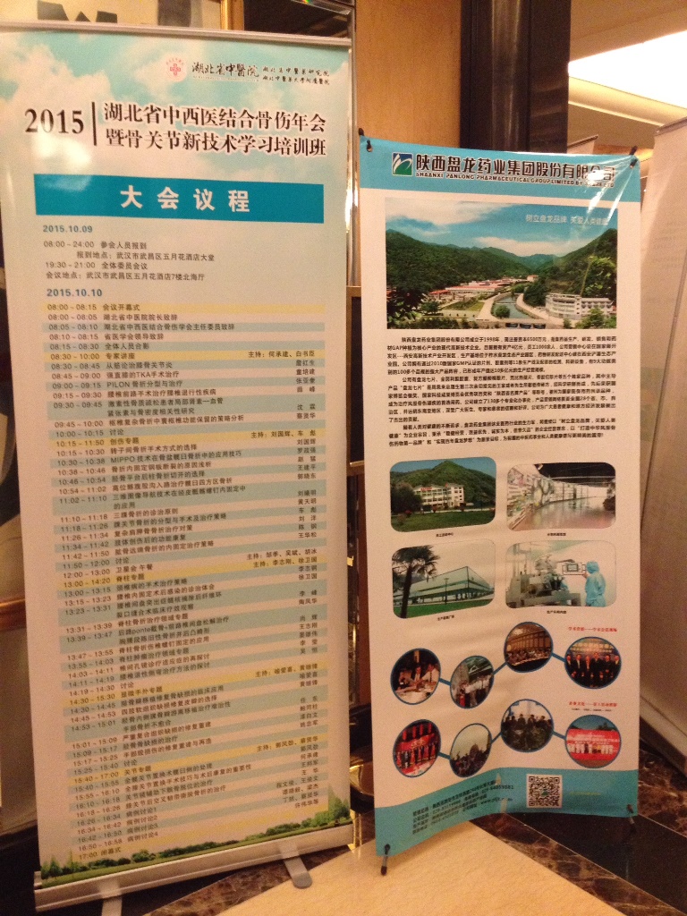 2015年10月10日,由湖北省中西医结合学会主办的“湖北省中西医结合骨伤年会暨骨关节新技术学习培训会议”在武汉召开。来自全国各地的专家及各产品商150余人参会,我公司市场推广部学术经理蒋娜及学术专员梁艳代表公司参会并布展。