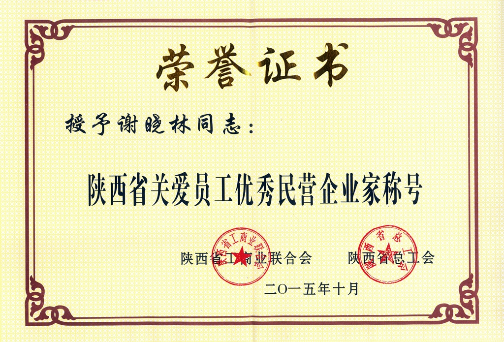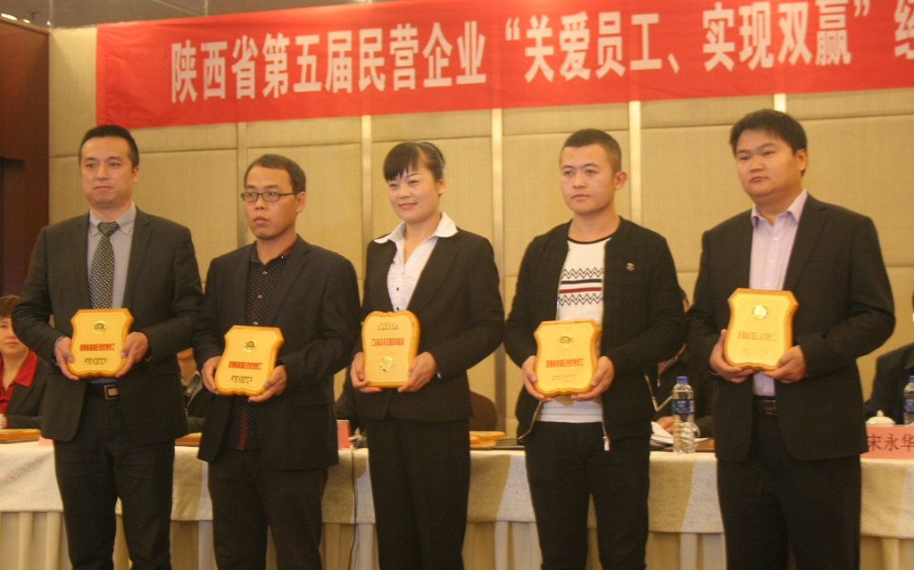2015年10月30日,陕西省第五届民营企业“关爱员工 实现双赢”经验交流暨表彰大会在西安人民大厦召开。省委统战部副部长、省工商联党组书记、常务副主席刘玉明,省总工会党组副书记、常务副主席周树红,省工商联党组成员、副主席张永乐等领导出席会议,来自全省各市、县的工商联、总工会,各企业家代表、员工代表和企业代表共计100余人参加了会议。